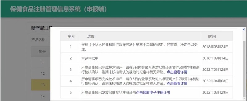 2022年8月30日,我司工作人員到審評中心大廳為委托我司申報的合作伙伴成功領(lǐng)取保健食品注冊證書。該產(chǎn)品系2018年2月提交受理,6月獲得審評意見,8月遞交補充資料。2021年被抽中動態(tài)核查試點,我司指導(dǎo)企業(yè)充分準(zhǔn)備,現(xiàn)場核查順利通過,抽檢樣品也復(fù)核通過!2022年3月通知校對批準(zhǔn)證書及其附件內(nèi)容,6月發(fā)布證書公告。