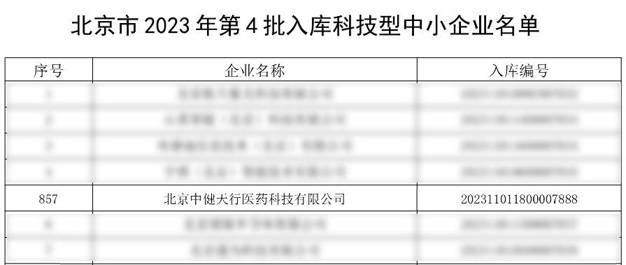 近日,北京市科學技術(shù)委員會,公布了2023年第四批入庫“北京市科技型中小企業(yè)”名單,北京中健天行醫(yī)藥科技有限公司再次榮獲北京市科技型中小企業(yè)認定,這一殊榮標志著我司在研發(fā)申報科技創(chuàng)新領(lǐng)域取得了顯著的成就,也是對其不斷努力和創(chuàng)新能力的高度肯定。