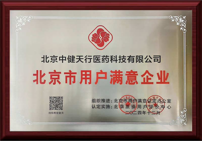 近日,北京市社會企業(yè)質(zhì)量協(xié)會公布2024年第八批 “北京市用戶滿意企業(yè)”名單,北京中健天行醫(yī)藥科技有限公司成功入選,獲得“北京市用戶滿意企業(yè)”榮譽稱號。