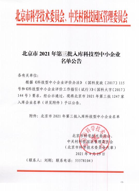 近日,北京市科學技術委員會公示2021年第三批入庫科技型中小企業(yè)公示名單,我公司繼2018年被認定為“北京市科技型中小企業(yè)”和2019年第一批入庫科技型中小企業(yè),再次獲此稱號,這是我公司研究開發(fā)服務取得的又一喜人成果,是我公司走向科技型企業(yè)發(fā)展的一個巨大突破,更是有關政府部門對我司研發(fā)和技術服務的充分認可。
