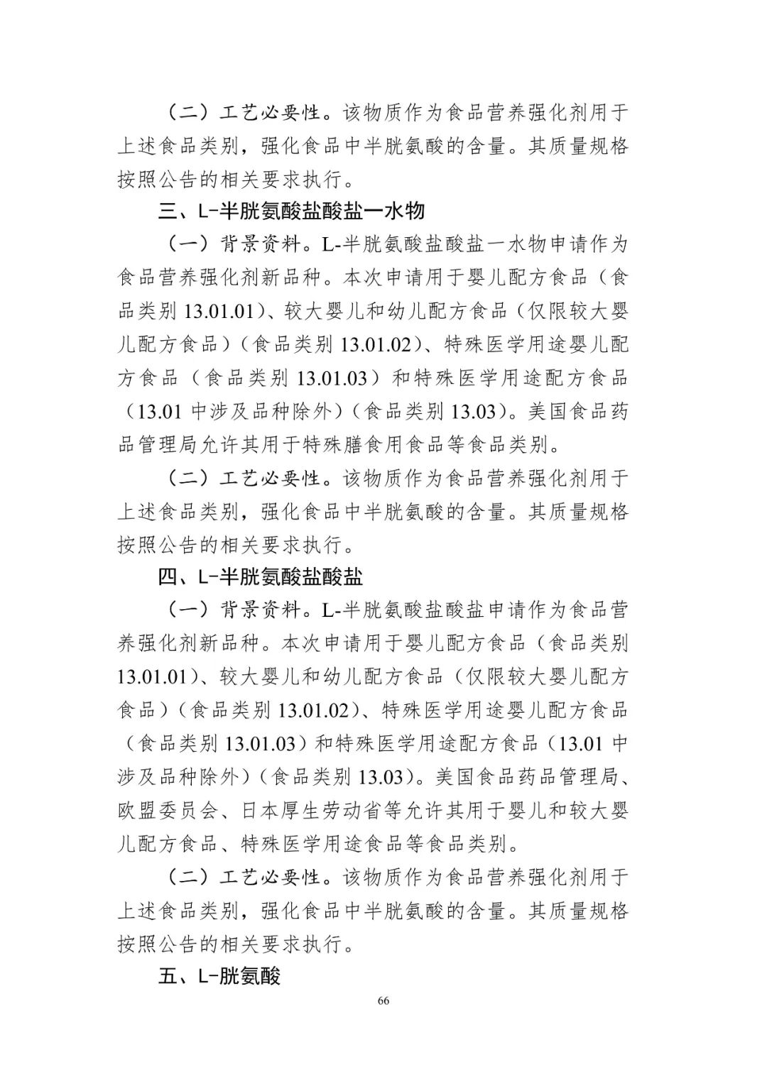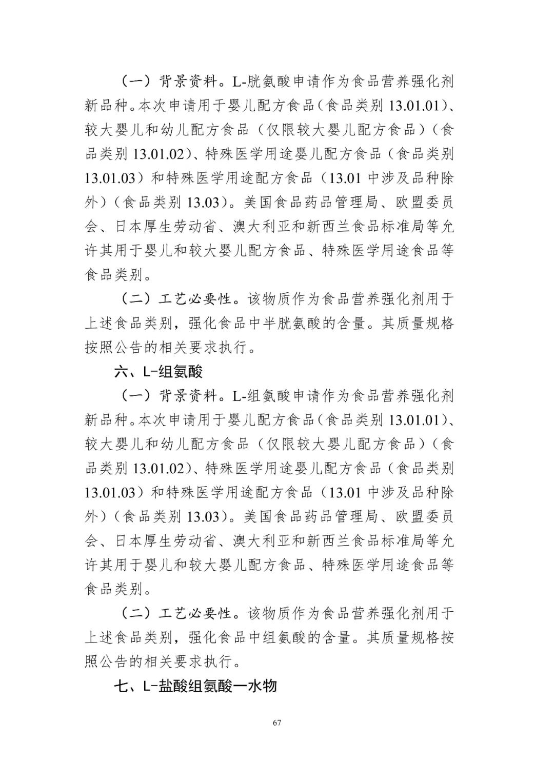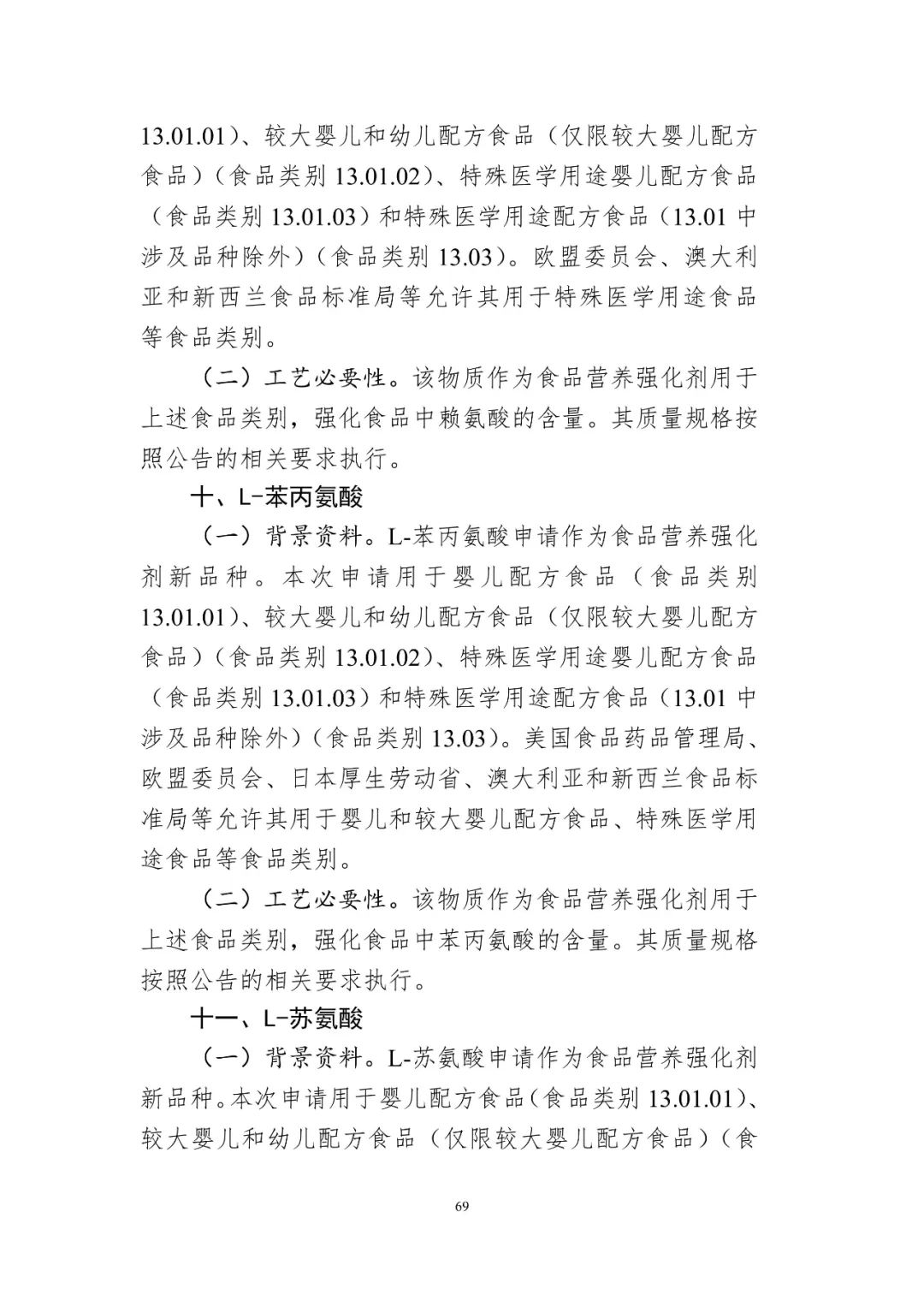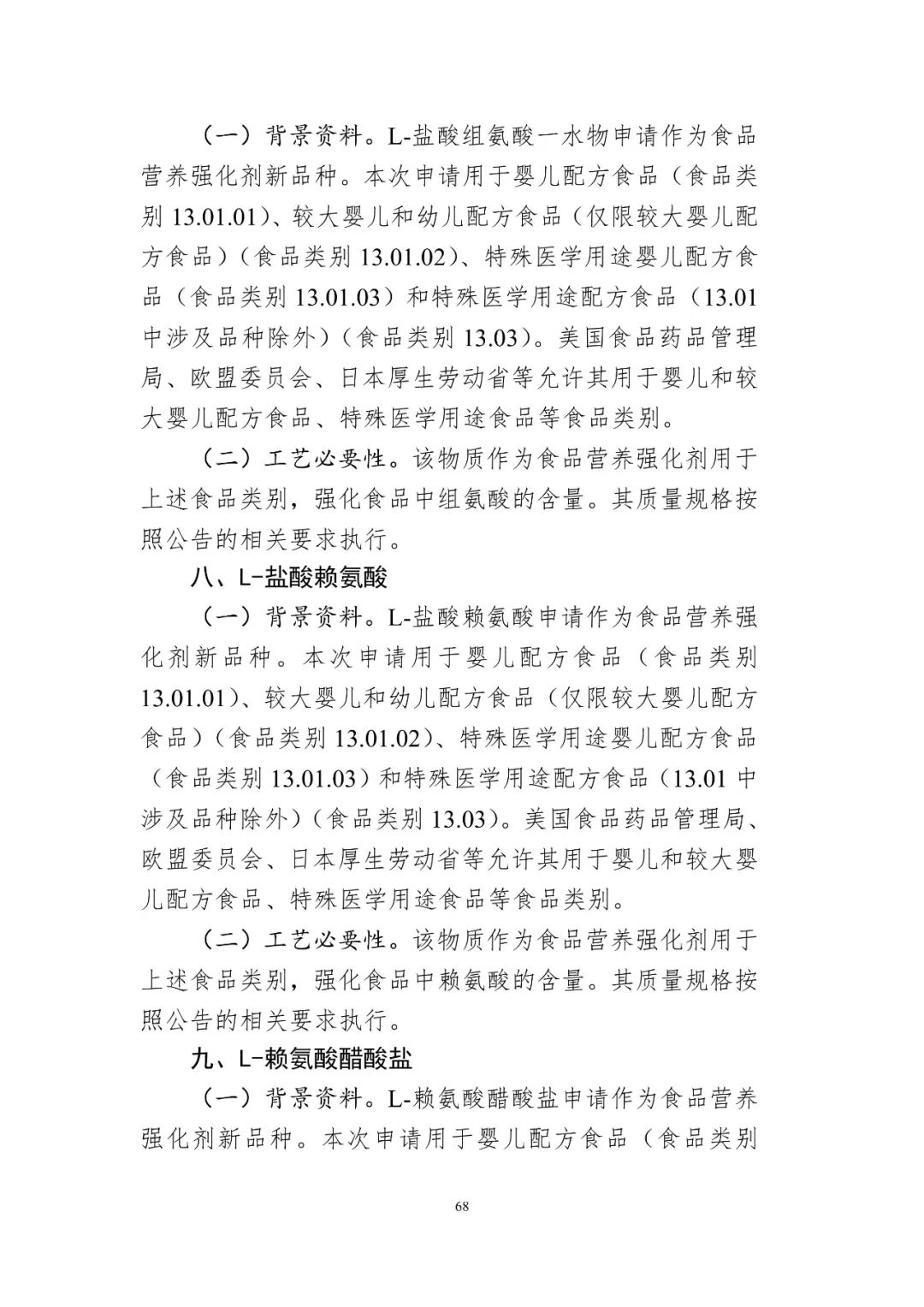 (2)L-半胱氨酸、L-半胱氨酸鹽酸鹽一水物、L-半胱氨酸鹽酸鹽、L-胱氨酸、L-組氨酸、L-鹽酸組氨酸一水物、L-鹽酸賴氨酸、L-賴氨酸醋酸鹽、L-苯丙氨酸、L-蘇氨酸的用量及使用范圍: