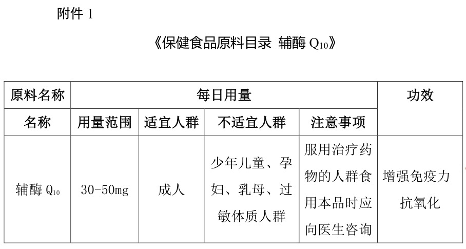 2020年12月1日,輔酶Q10原料正式納入保健食品原料目錄。
