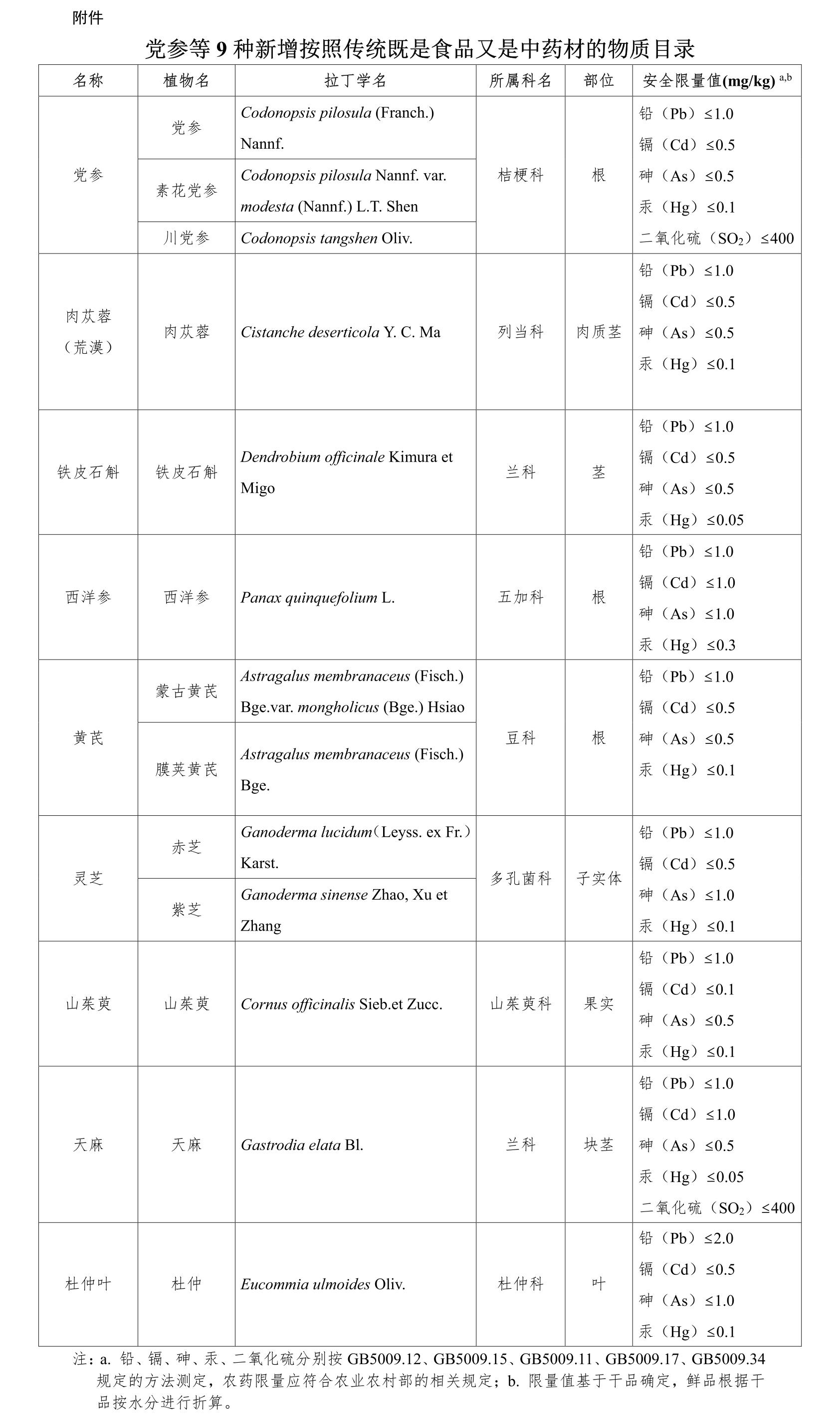 解讀《關(guān)于黨參等9種新增按照傳統(tǒng)既是食品又是中藥材的物質(zhì)公告》(2023年 第9號(hào))