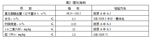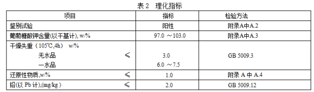 理化指標應(yīng)符合表2的規(guī)定。