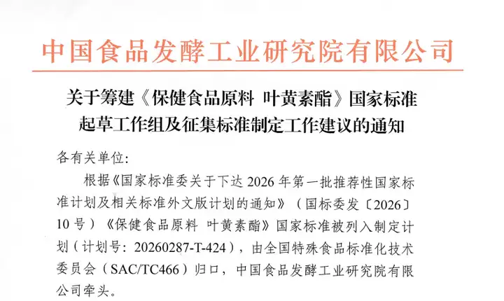 幾乎同一時(shí)間,國(guó)家層面釋放重磅信號(hào):《保健食品原料 葉黃素酯》國(guó)家標(biāo)準(zhǔn)起草工作組正式籌建。