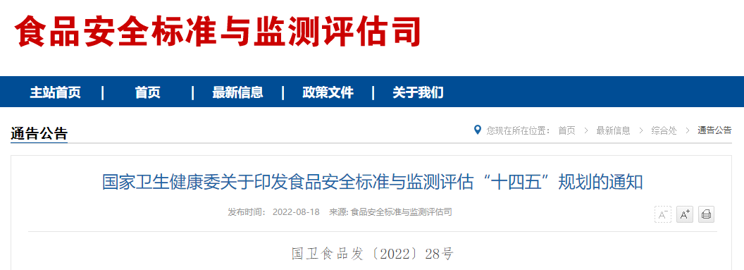 食品安全標(biāo)準(zhǔn)與監(jiān)測評估“十四五”規(guī)劃