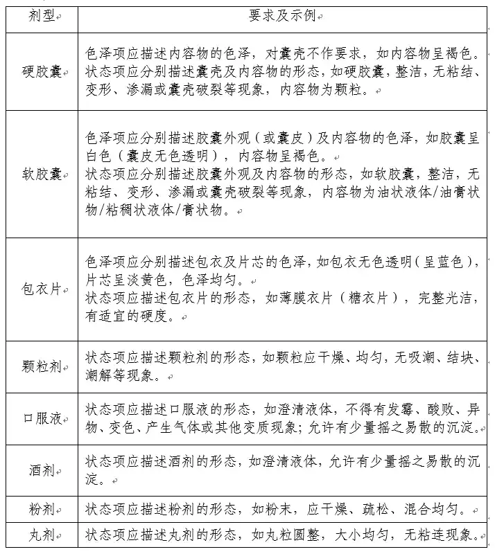 對于狀態(tài)項,如產(chǎn)品屬于藥典收載劑型,可參照《中華人民共和國藥典》(2025年版)描述其狀態(tài),如屬于食品形態(tài),可參照相應國家相關標準描述其狀態(tài),并應包含對雜質(zhì)的描述(如無正常視力可見外來異物)。