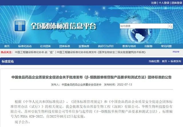 再加上《食品中β-煙酰胺單核苷酸(NMN)含量測定 高效液相色譜法》和《化妝品中β-煙酰胺單核苷酸(NMN)含量測定 高效液相色譜法》兩項團(tuán)體標(biāo)準(zhǔn)項目的立項,將進(jìn)一步填補(bǔ)國內(nèi)NMN行業(yè)空白,規(guī)范NMN及相關(guān)產(chǎn)品發(fā)展。