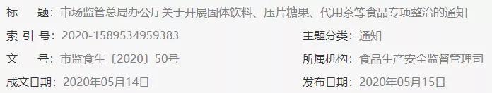 市場監(jiān)管總局辦公廳關(guān)于開展固體飲料、壓片