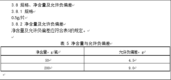 原輔料要求項、鑒別項、規(guī)格、凈含量及允許負偏差項應按照本指南要求編寫。
