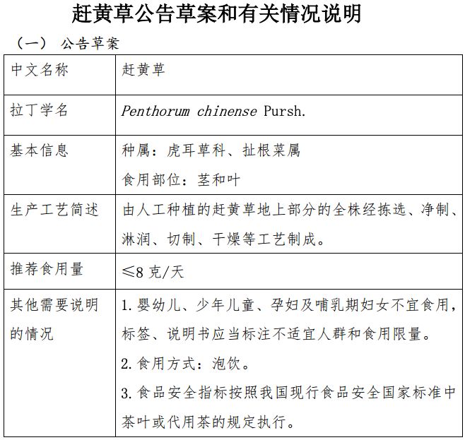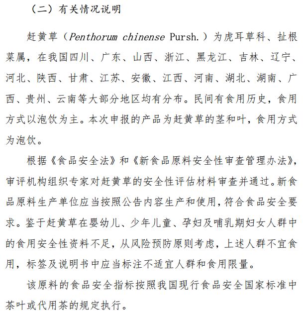 新食品原料趕黃草公開征求意見