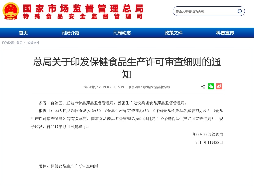 為規(guī)范保健食品生產(chǎn)許可審查工作,督促企業(yè)落實主體責任,保障保健食品質(zhì)量安全,依據(jù)《中華人民共和國食品安全法》《食品生產(chǎn)許可管理辦法》《保健食品注冊與備案管理辦法》《保健食品良好生產(chǎn)規(guī)范》《食品生產(chǎn)許可審查通則》等相關(guān)法律法規(guī)和技術(shù)標準的規(guī)定,制定本細則。