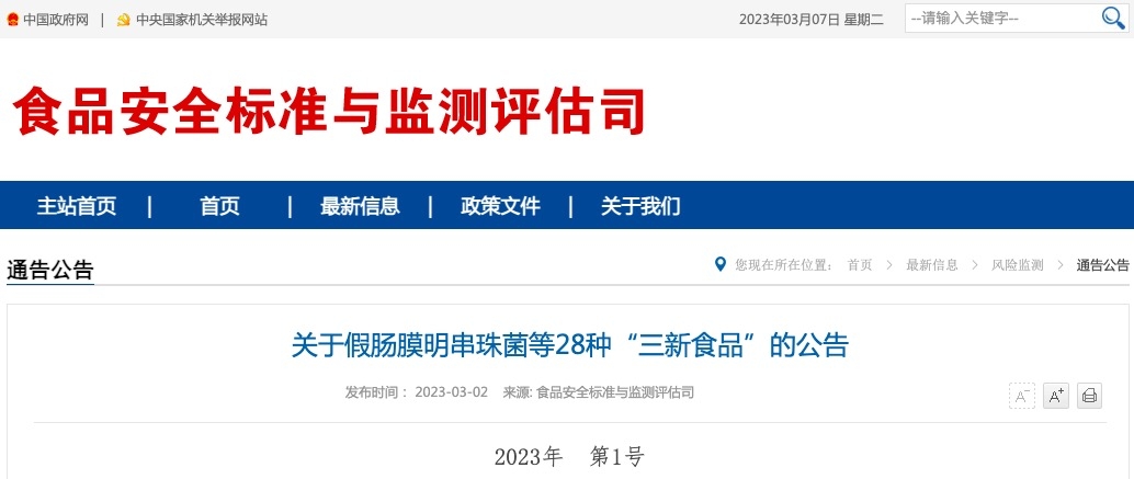 關于假腸膜明串珠菌等28種“三新食品”的公告