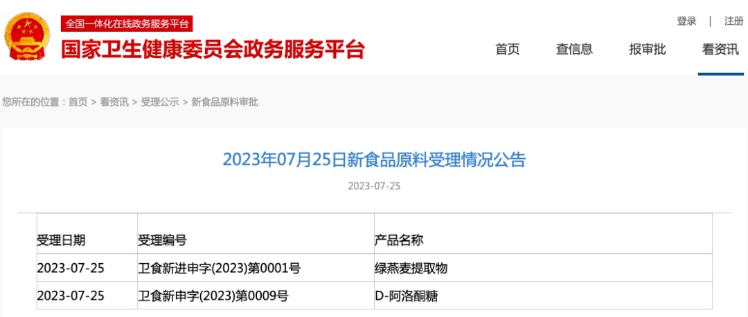 新食品原料 | 國家衛(wèi)健委發(fā)布綠燕麥提取物、D-阿洛酮糖受理公告
