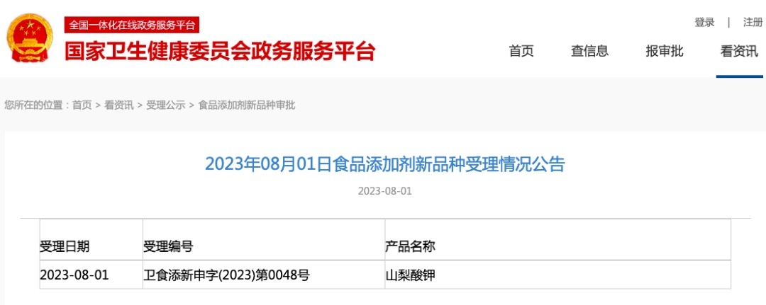受理編號(hào):衛(wèi)食添新申字(2023)第0048號(hào)