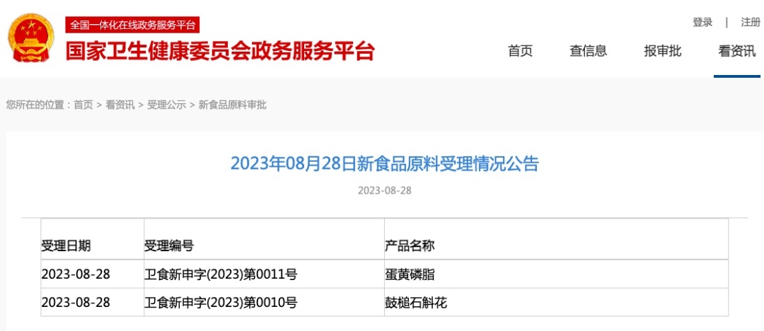 新食品原料 | 國(guó)家衛(wèi)健委發(fā)布蛋黃磷脂、鼓槌石斛花受理公告