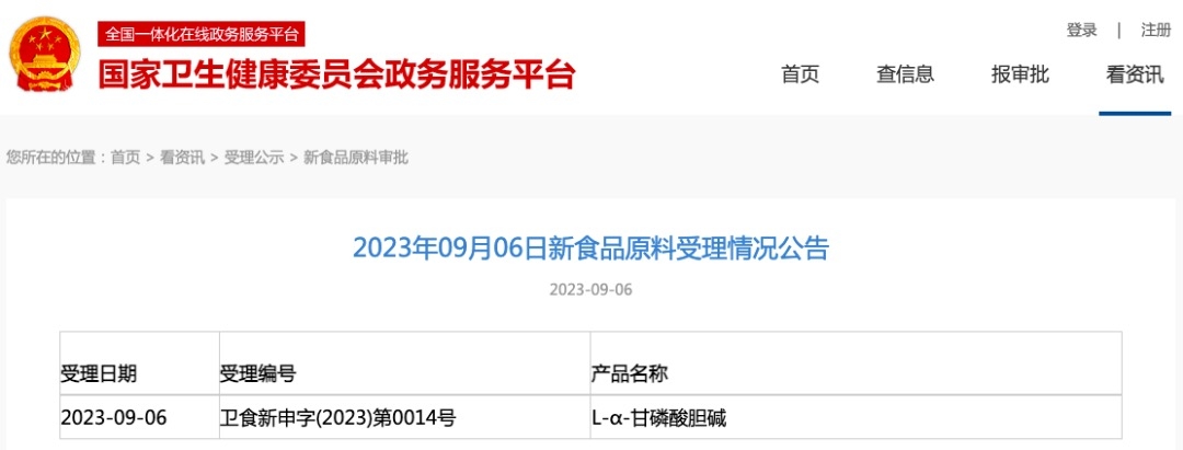 受理編號:衛(wèi)食新申字(2023)第0014號