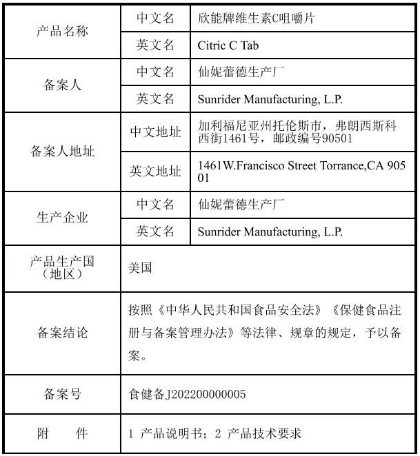天津市2022上半年保健食品備案信息匯總