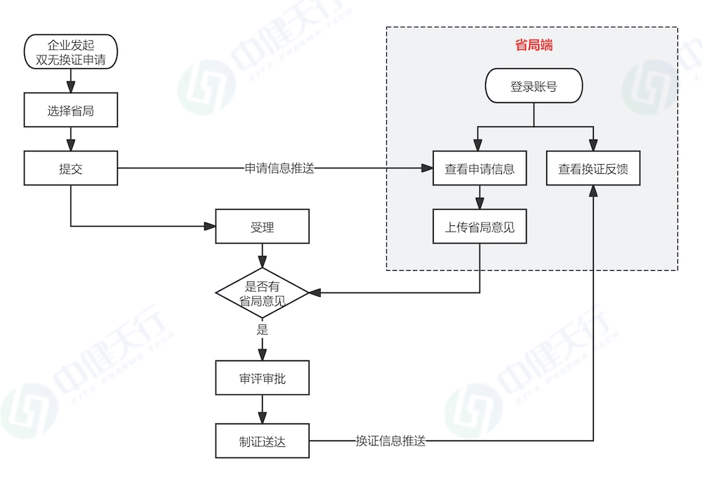 對于國產(chǎn)“雙無”產(chǎn)品,注冊申請人應提前向核發(fā)生產(chǎn)許可的省局申請《出具換證意見》,待取得省局意見后,再在系統(tǒng)中發(fā)起“雙無”換證申請。但是由于不同省局出具換證意見的工作方案存在差異,申請人需提前了解當?shù)鼐唧w要求,具體可參考以下流程: