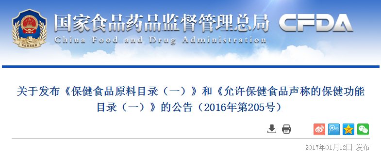 關(guān)于發(fā)布《保健食品原料目錄(一)》和《允許保健食品聲稱的保健功能目錄(一)》的公告