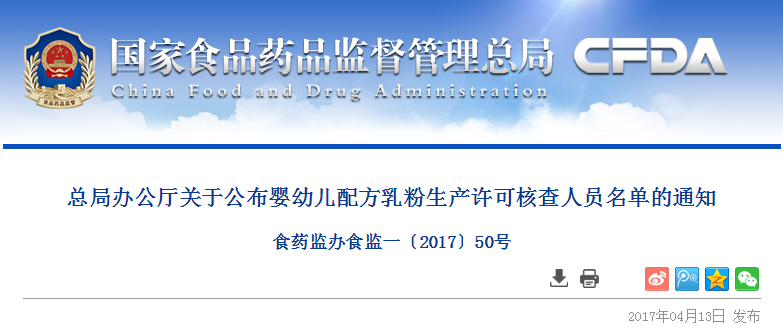為加強嬰幼兒配方乳粉質(zhì)量安全監(jiān)管,嚴(yán)格嬰幼兒配方乳粉生產(chǎn)許可審查,確保各地嬰幼兒配方乳粉生產(chǎn)許可證有效期屆滿延續(xù)工作順利進(jìn)行,總局委托國家食品藥品監(jiān)督管理總局保健食品審評中心組織開展嬰幼兒配方乳粉生產(chǎn)許可核查人員培訓(xùn)考核工作。經(jīng)過培訓(xùn)考核,共207人符合要求,可以從事嬰幼兒配方乳粉生產(chǎn)許可核查工作,現(xiàn)將人員名單予以公布(見附件),自公布之日起,有效期為三年。各省級食品藥品監(jiān)督管理部門要按照有關(guān)規(guī)定和總局要求,從名單中選取核查人員開展嬰幼兒配方乳粉生產(chǎn)許可現(xiàn)場核查工作。