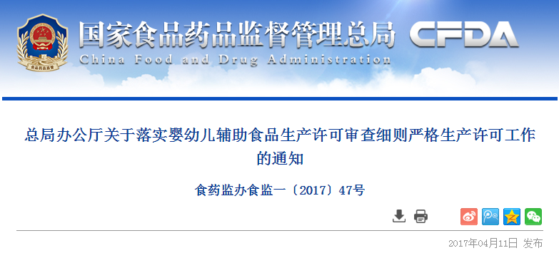 各地食品藥品監(jiān)督管理局要按照《食品生產(chǎn)許可管理辦法》《審查通則》《嬰輔細(xì)則》內(nèi)容和相關(guān)法律法規(guī)、食品安全國家標(biāo)準(zhǔn)等要求,組織做好嬰幼兒輔助食品生產(chǎn)許可審查工作。