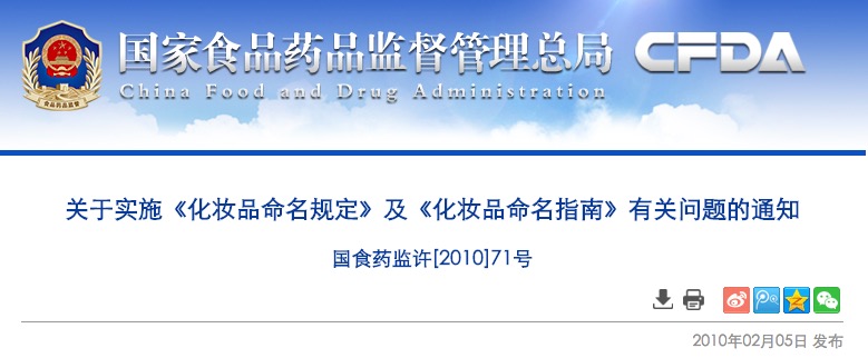 關(guān)于實(shí)施《化妝品命名規(guī)定》及《化妝品命名指南》有關(guān)問(wèn)題的通知