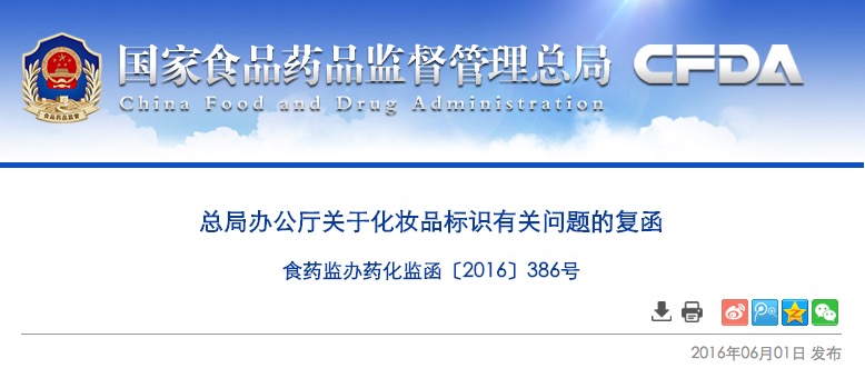 總局辦公廳關(guān)于化妝品標識有關(guān)問題的復(fù)函