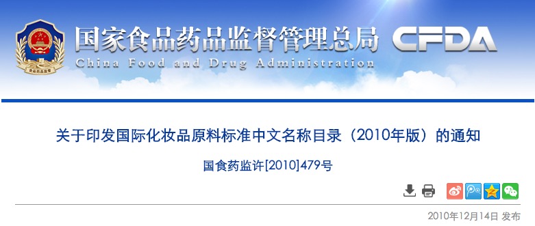 關于印發(fā)國際化妝品原料標準中文名稱目錄(2010年版)的通知