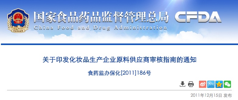 關(guān)于印發(fā)化妝品生產(chǎn)企業(yè)原料供應(yīng)商審核指南的通知