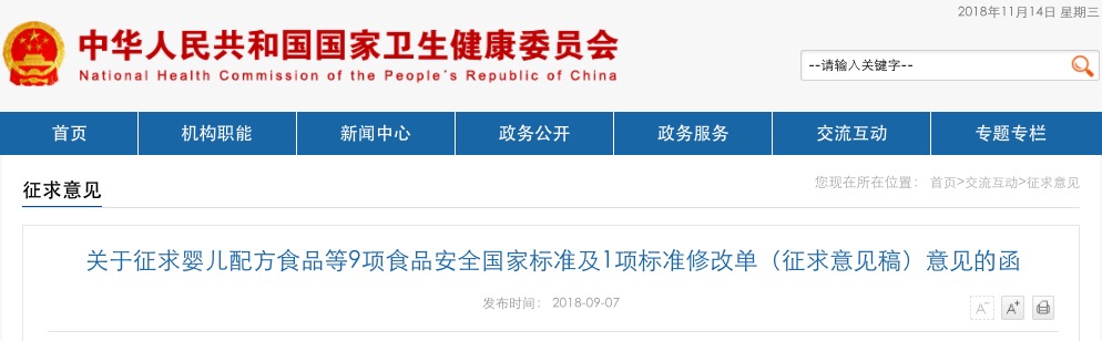 根據(jù)《食品安全法》規(guī)定,我委組織擬訂了《食品安全國(guó)家標(biāo)準(zhǔn) 嬰兒配方食品》等9項(xiàng)食品安全國(guó)家標(biāo)準(zhǔn)(征求意見(jiàn)稿)和《食品安全國(guó)家標(biāo)準(zhǔn) 運(yùn)動(dòng)營(yíng)養(yǎng)食品通則》(GB 24154-2015)第1號(hào)修改單(征求意見(jiàn)稿),現(xiàn)向社會(huì)公開(kāi)征求意見(jiàn)。請(qǐng)于2018年10月30日前登錄食品安全國(guó)家標(biāo)準(zhǔn)管理信息系統(tǒng)(http://bz.cfsa.net.cn/cfsa_aiguo)在線提交反饋意見(jiàn)。