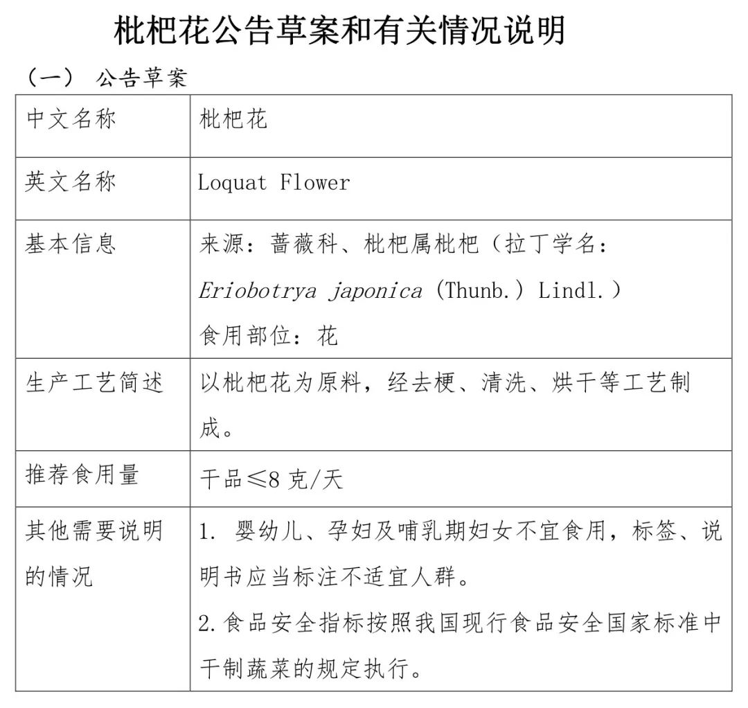 附件為新食品原料枇杷花征求意見內(nèi)容及有關(guān)情況的說明,請(qǐng)自行下載閱讀。如有意見或建議,請(qǐng)反饋至xspyl@cfsa.net.cn,并在郵件主題中注明“新食品原料意見反饋”。