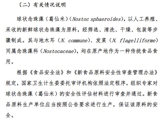 附件為新食品原料球狀念珠藻(葛仙米)征求意見內(nèi)容及有關(guān)情況的說(shuō)明,請(qǐng)自行下載閱讀。如有意見或建議,請(qǐng)反饋至xspyl@cfsa.net.cn,并在郵件主題中注明“新食品原料意見反饋”。