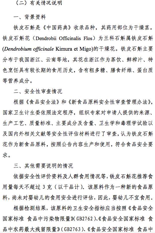 鐵皮石斛花等3種新食品原料公開征求意見