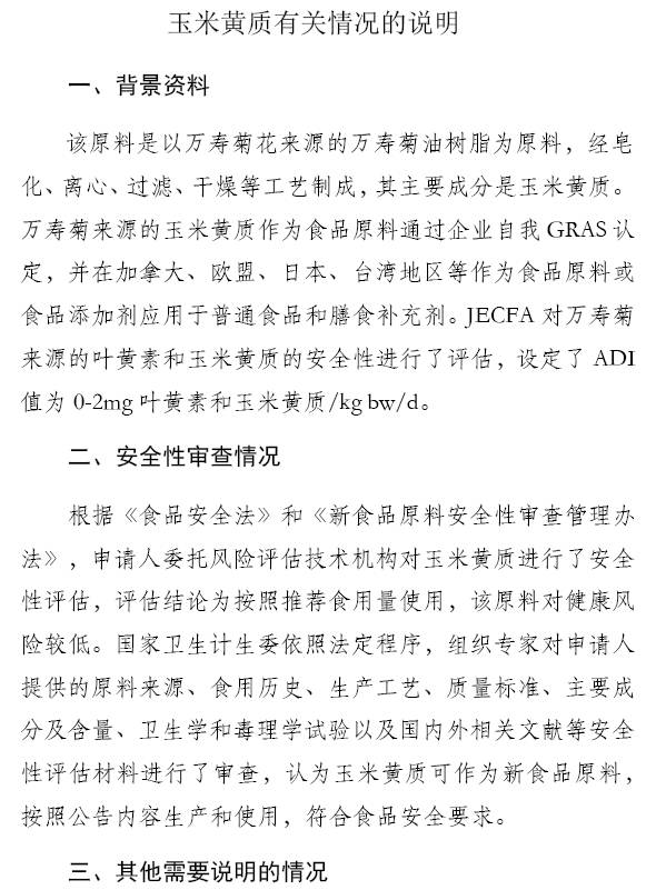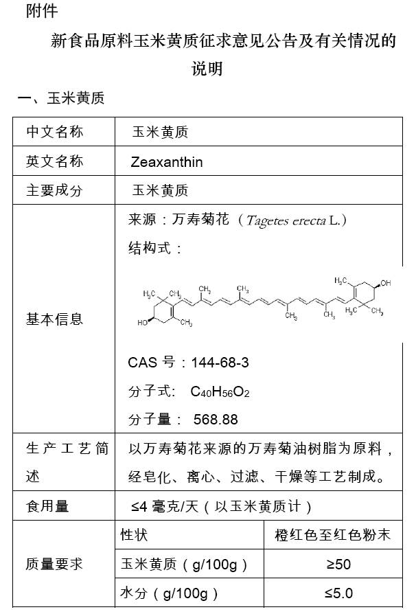 附件為玉米黃質(zhì)征求意見內(nèi)容及有關(guān)情況的說明,請自行下載閱讀。如有意見或建議,請反饋至xspyl@cfsa.net.cn,并在郵件主題中注明“新食品原料意見反饋”。