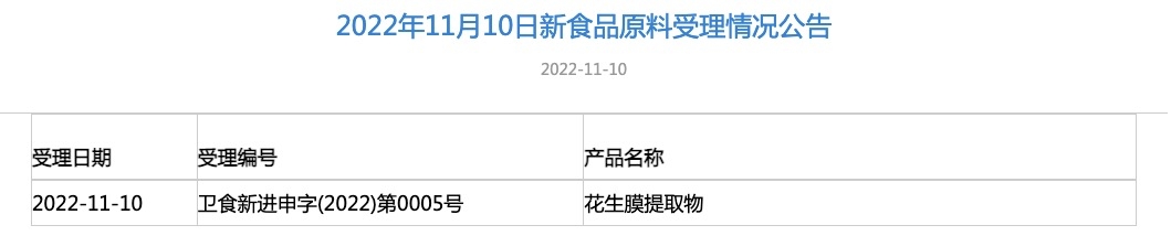國家衛(wèi)健委發(fā)布花生膜提取物新食品原料受理公告